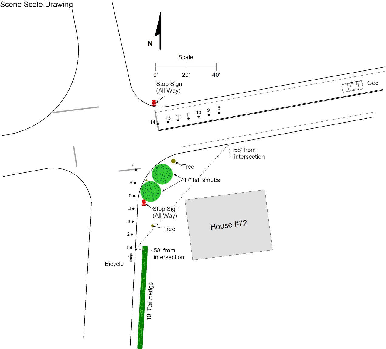 Scale drawings and other simple graphics are often extremely useful in understanding and explaining the events of an accident. We have extensive experience producing high quality scale drawings and graphics suitable for presentation at trail. Samples of some such graphics are shown here.